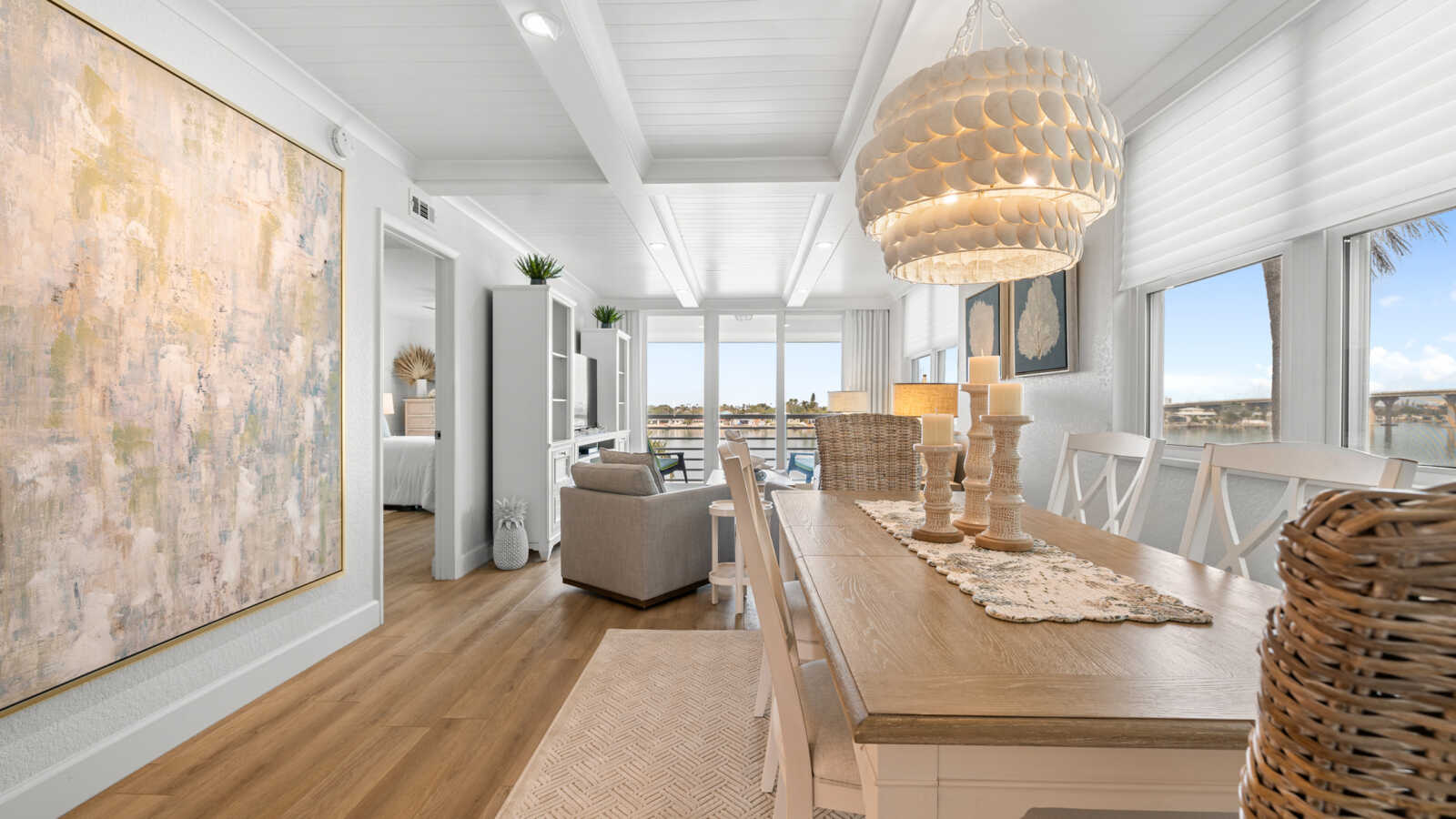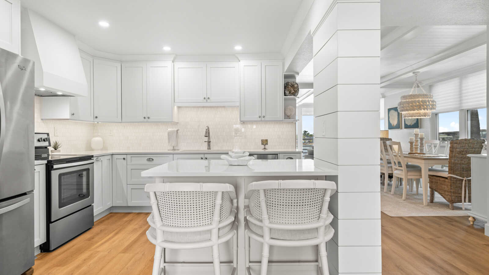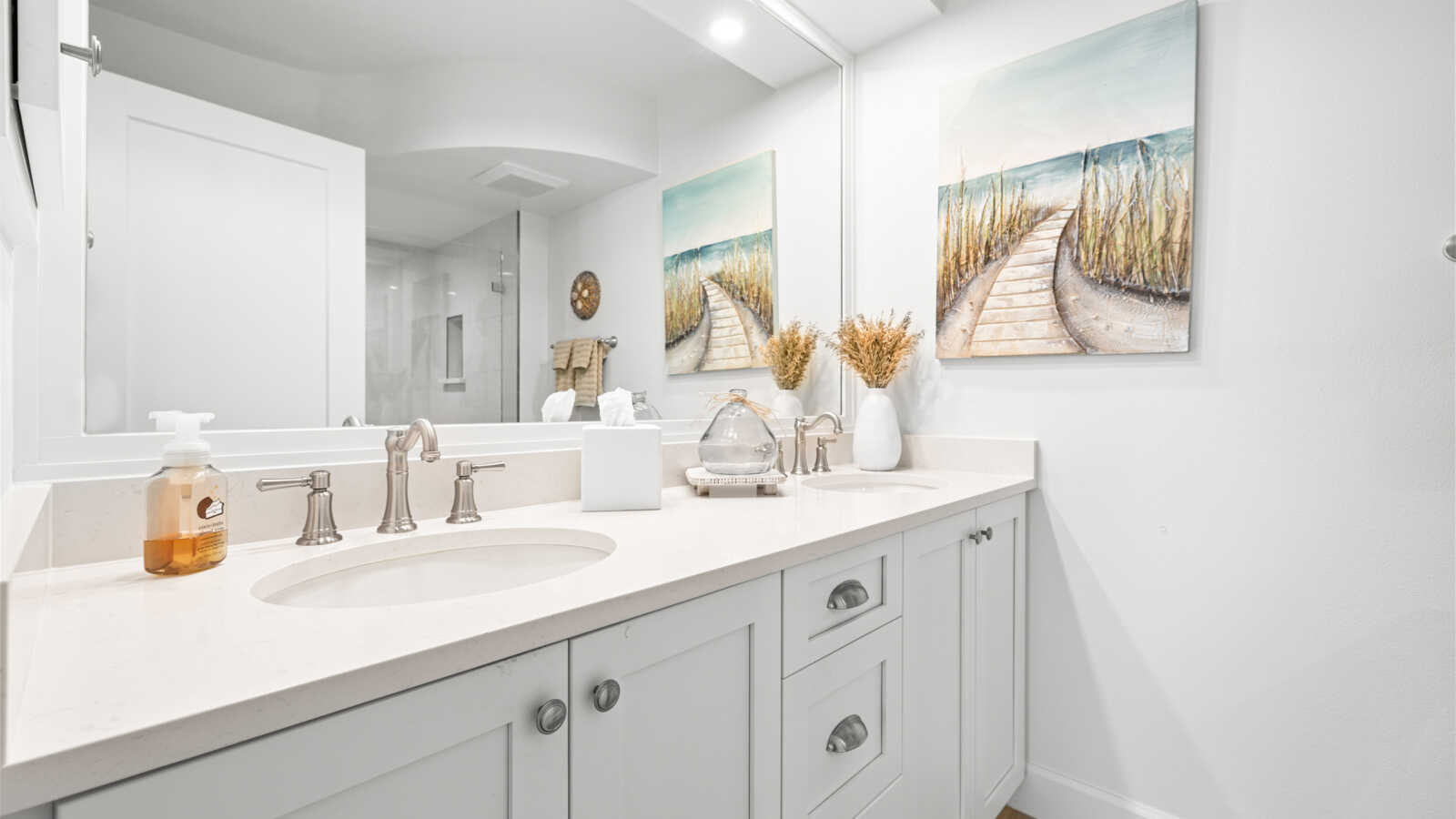 Throughout the house, spa-inspired bathrooms, breezy bedroom retreats, and thoughtfully designed nooks reflect a cohesive design narrative rooted in coastal tranquility and timeless luxury. Soft neutrals, organic accents, and natural light combine to elevate every space with effortless sophistication.